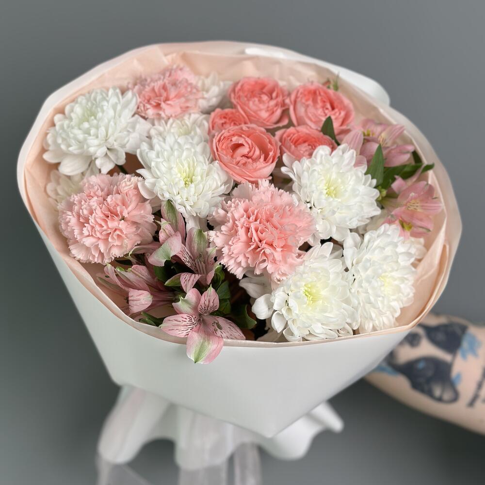 В составе очень стойкие цветы альстромерия, хризантема и диантусы-гвоздики ✨